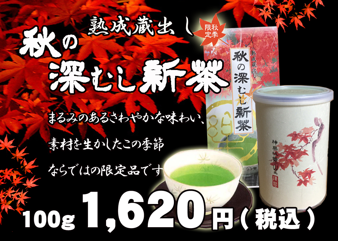 期間限定商品12月中旬までの販売です。- 秋の深むし新茶 100g缶