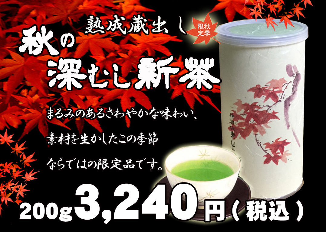 期間限定商品12月中旬までの販売です。- 秋の深むし新茶 200g缶